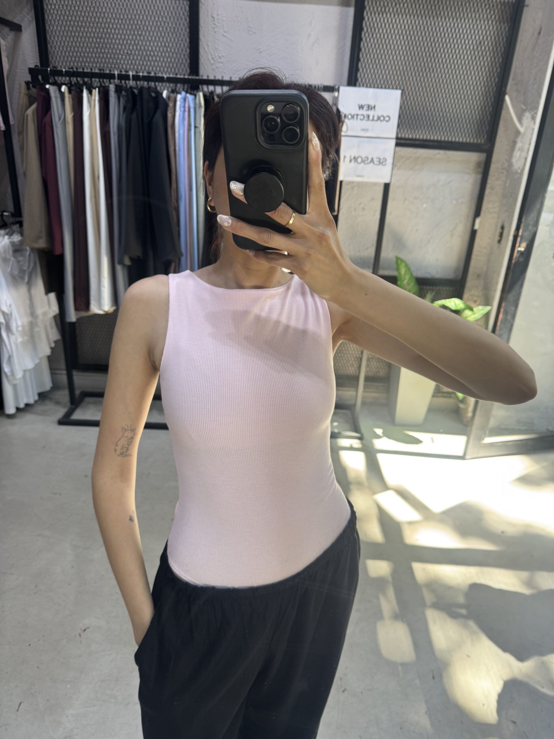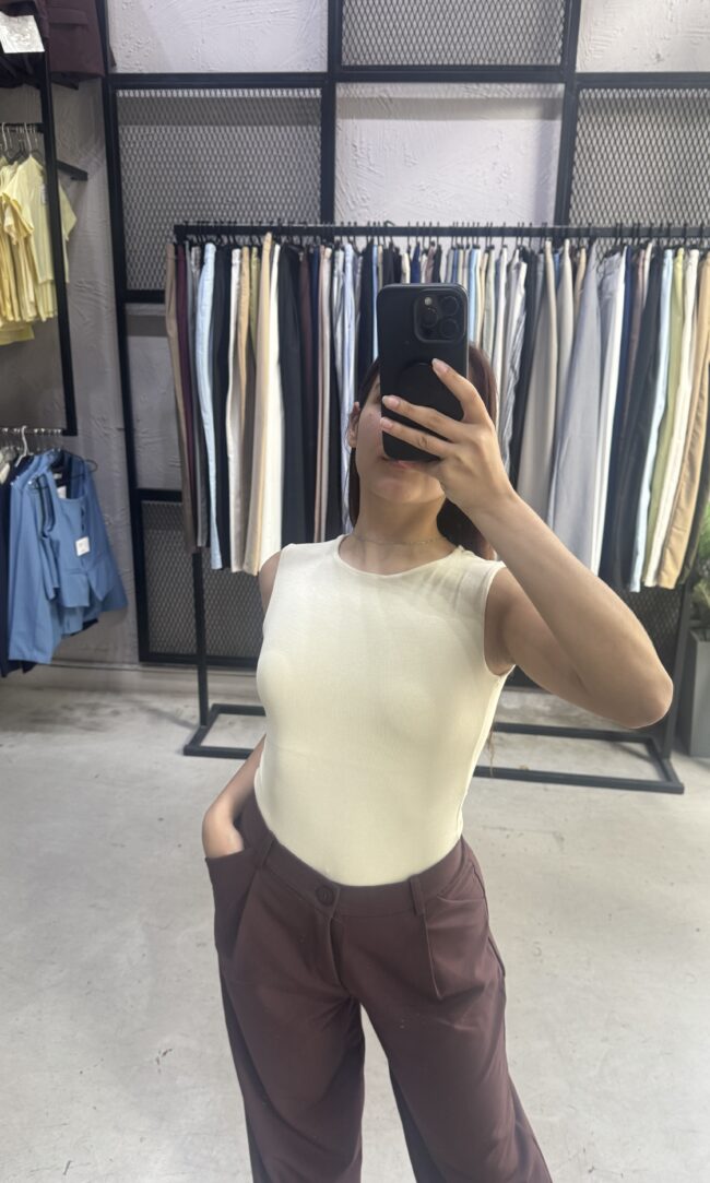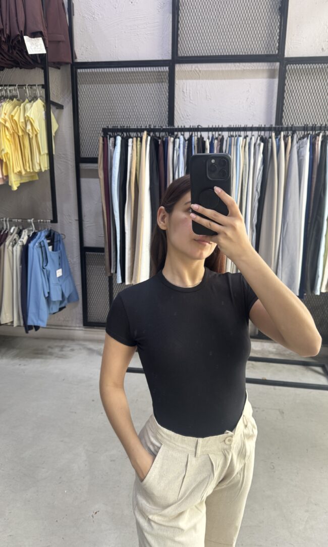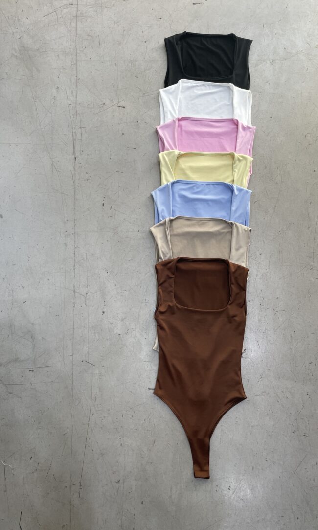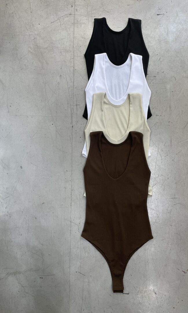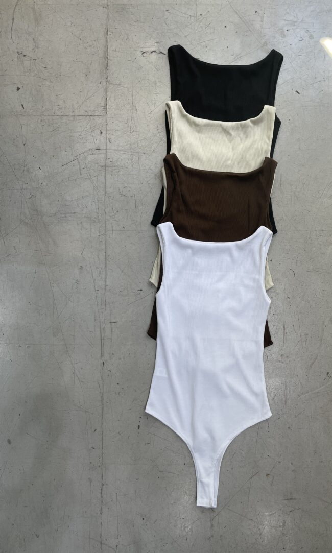 Body musculosa con escote bote y vista en delantero. Broche de acceso en parte inferior.