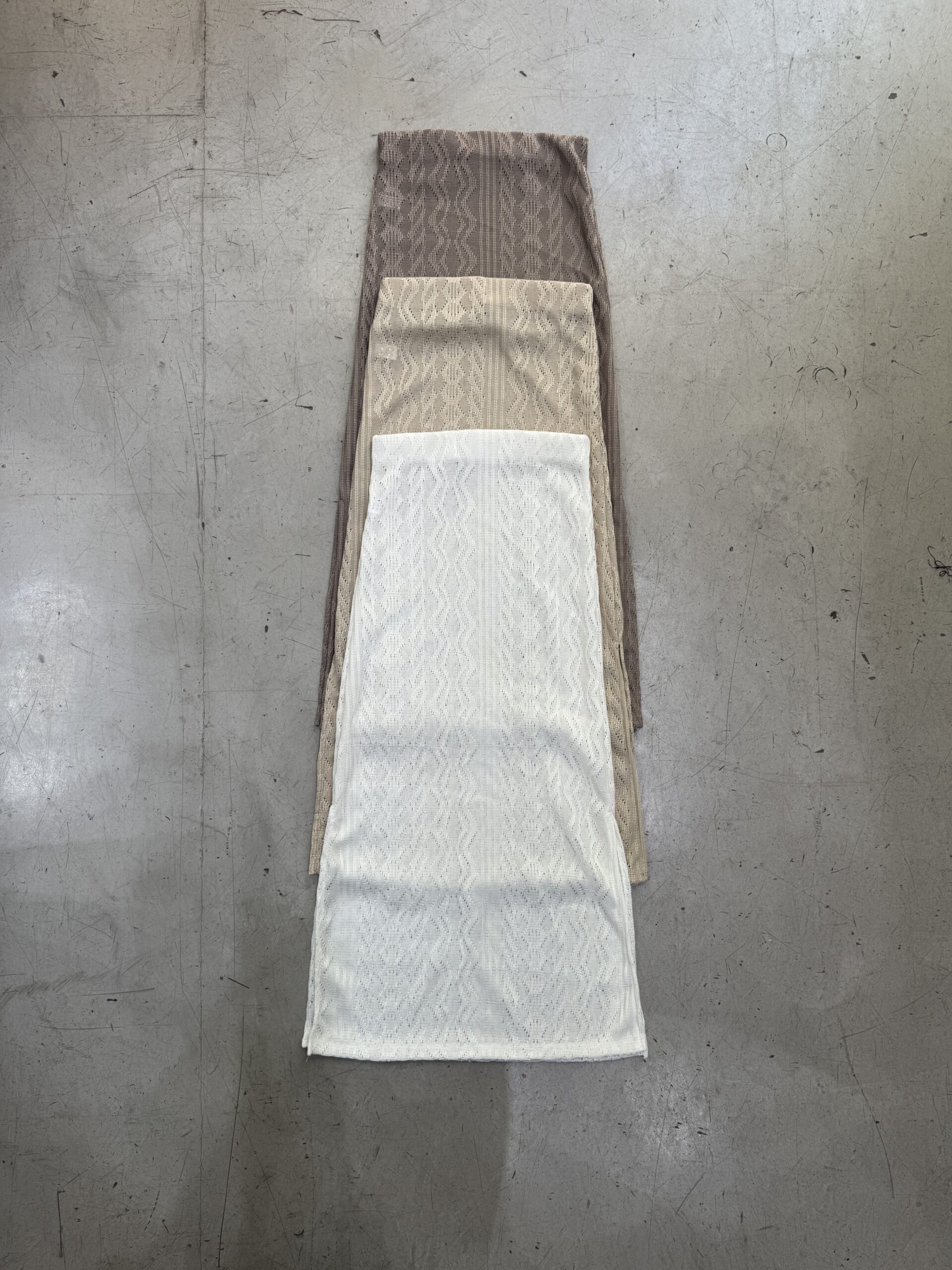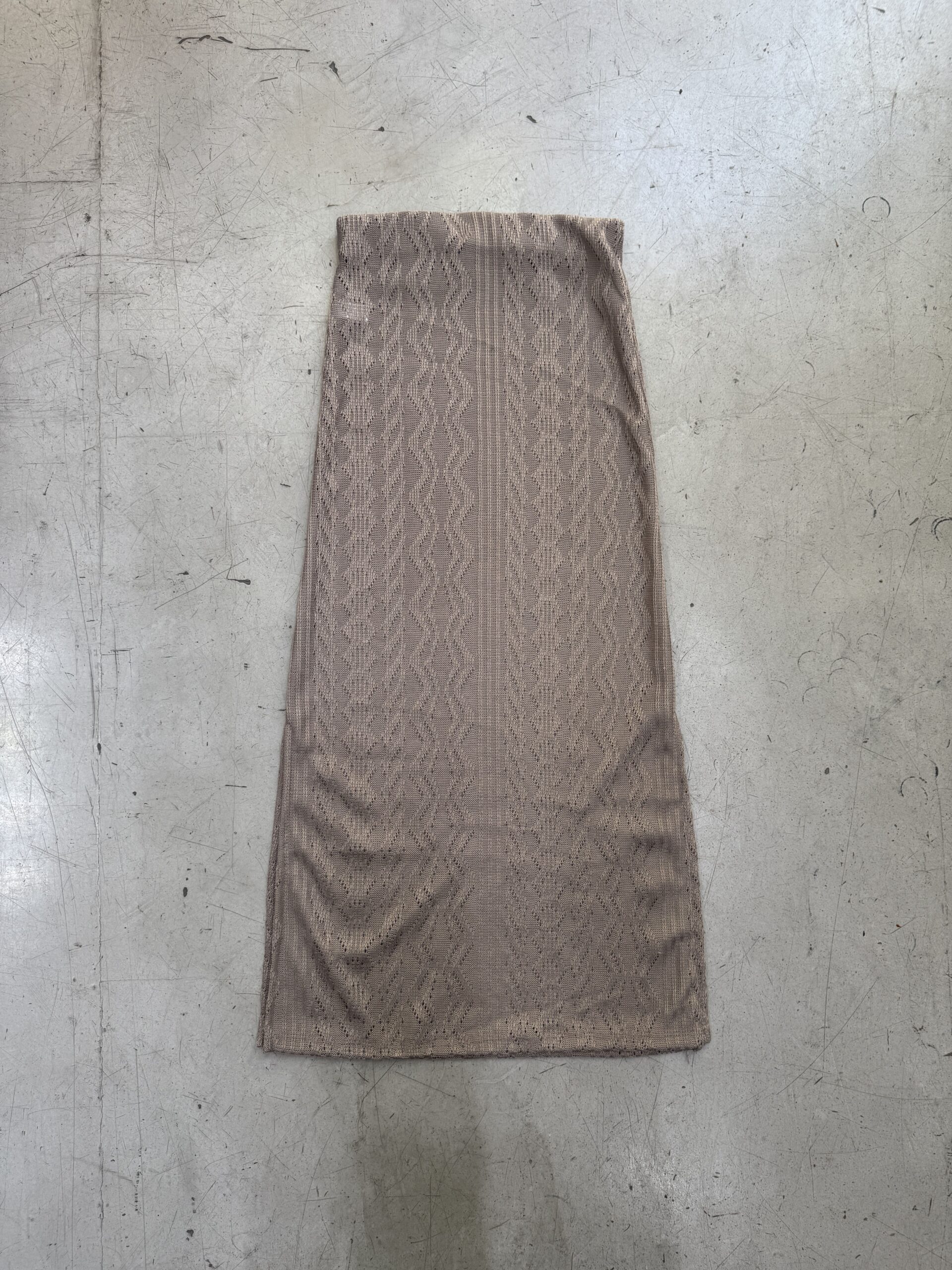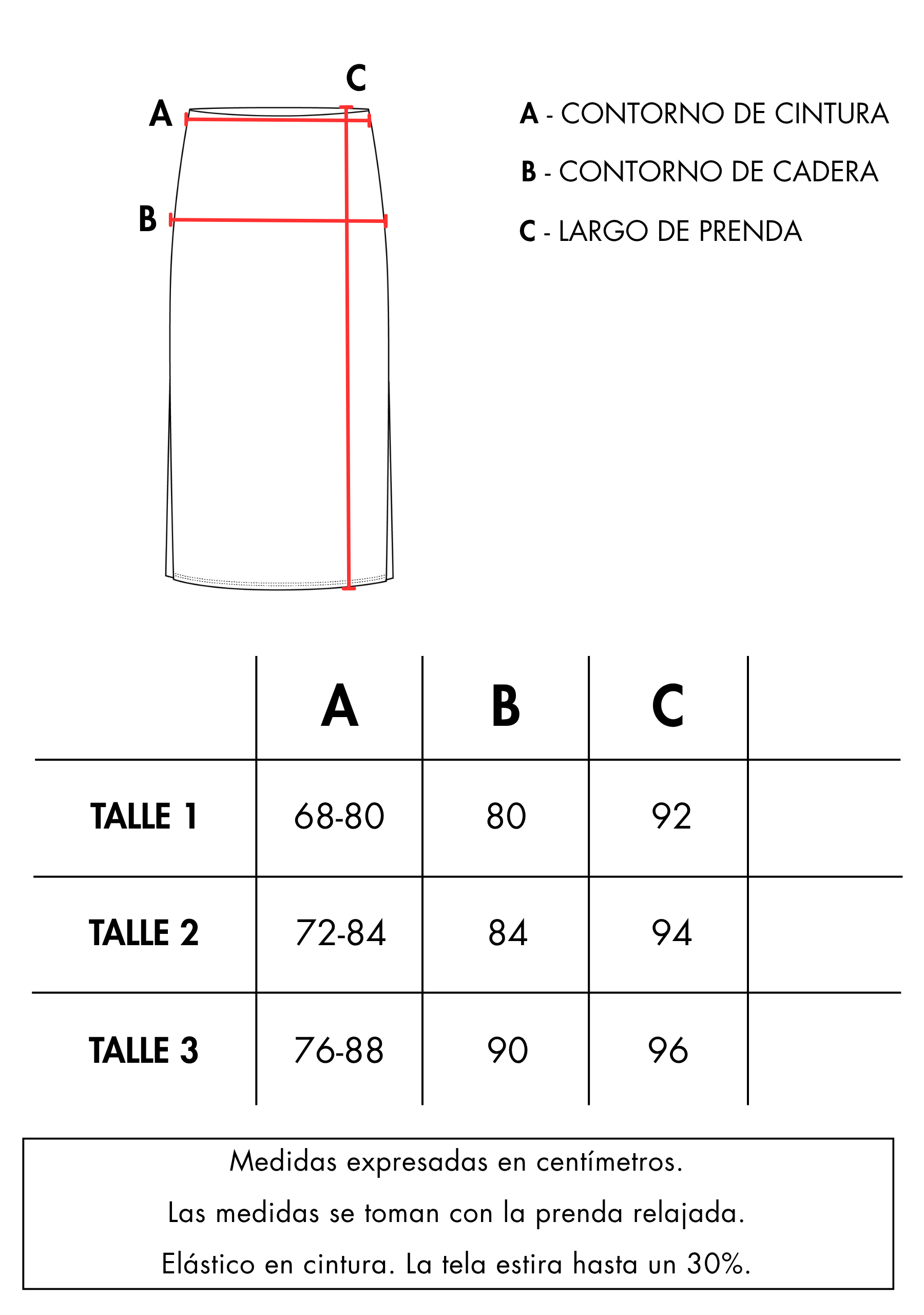 Falda confeccionada en tejido crochet, con tajos en ambos laterales y elástico en cintura.