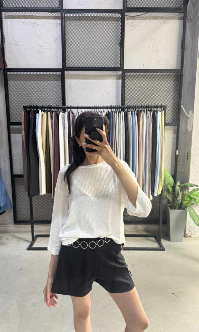 Manga larga básica de cuello redondo.