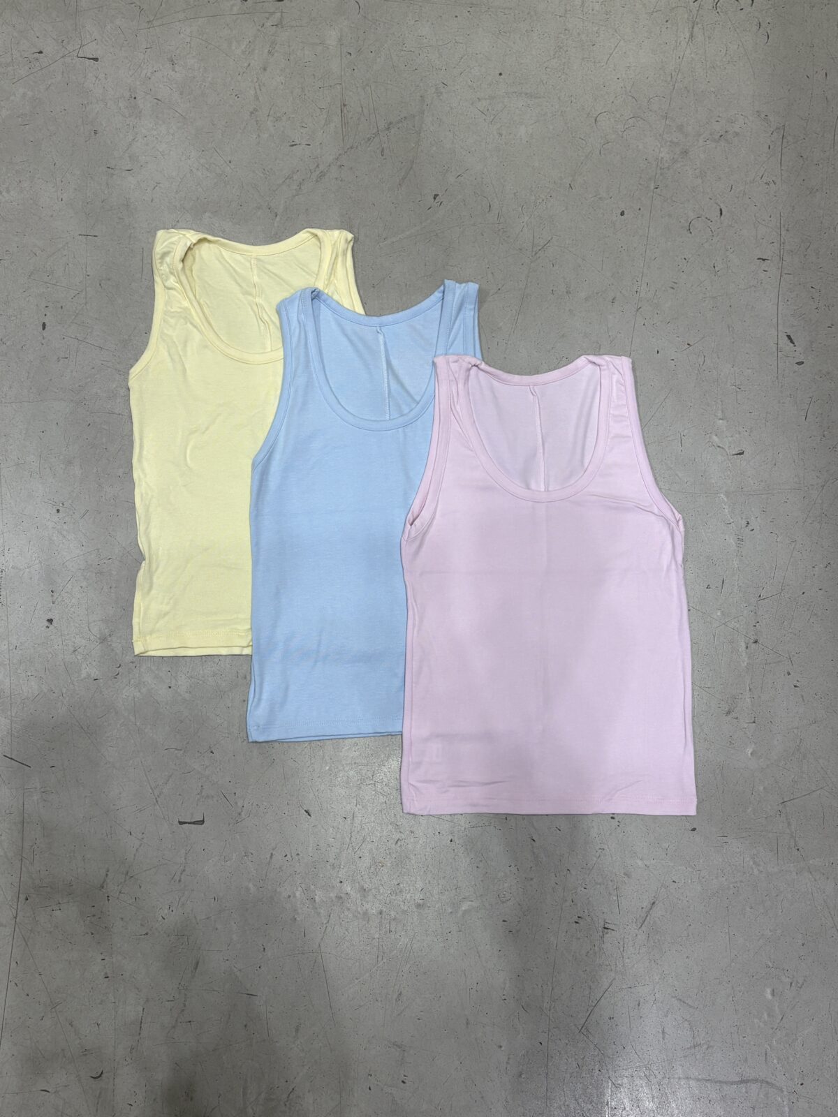 Musculosa escote cavado redondo con terminación collareta fina. Recorte en centro espalda. Modelo largo a la cadera.