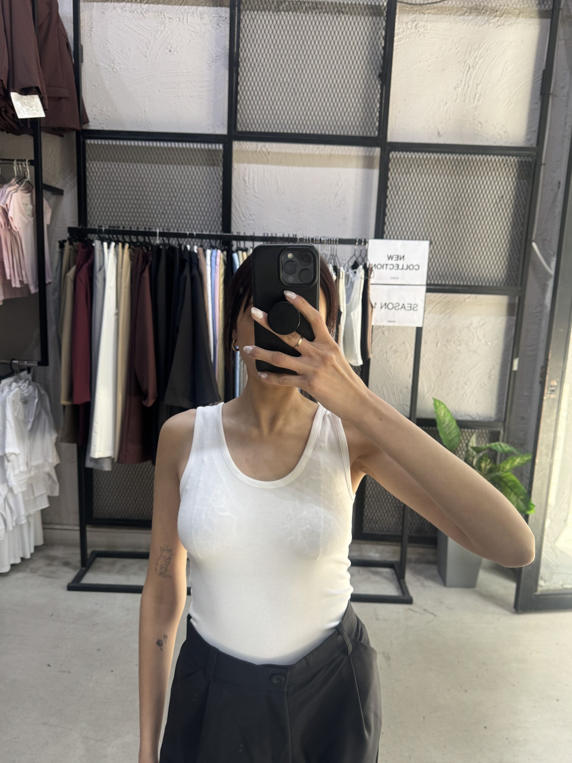 Musculosa de diseño clásico de breteles anchos y escote redondo.