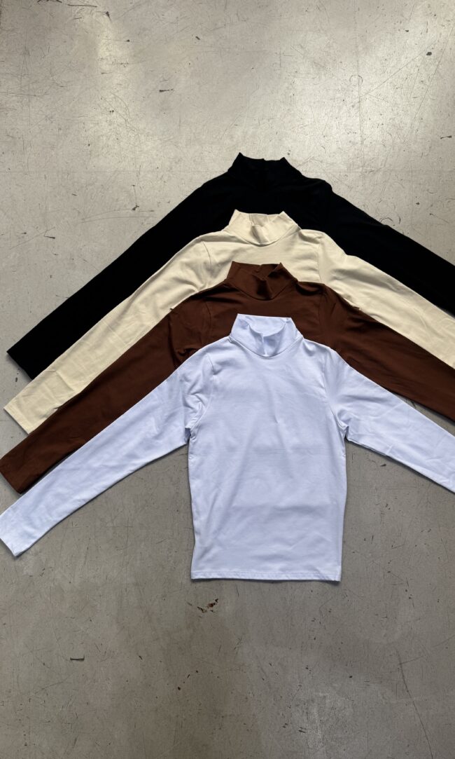 SKU 5/142 Textil: lanilla Composición: 82% poliéster / 14% rayon / 4% elastano Remera manga larga con hombros descubiertos. Podés encontrarla del talle 1 al 3. El maniquí tiene puesto un talle 1. Sus medidas son 84 - 68 - 88
