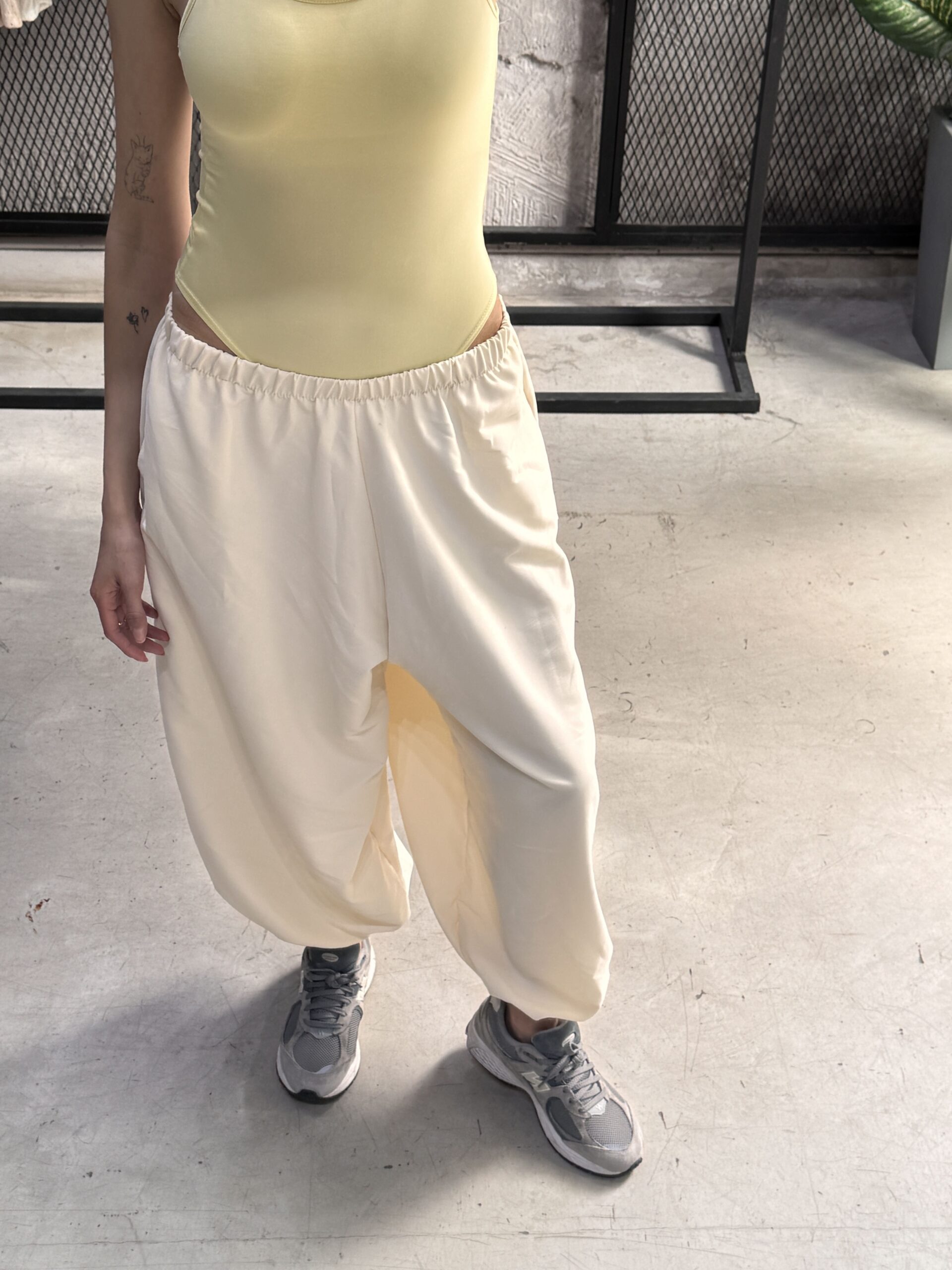 Pantalón balloon tiro bajo, con elástico en cintura y botapie.