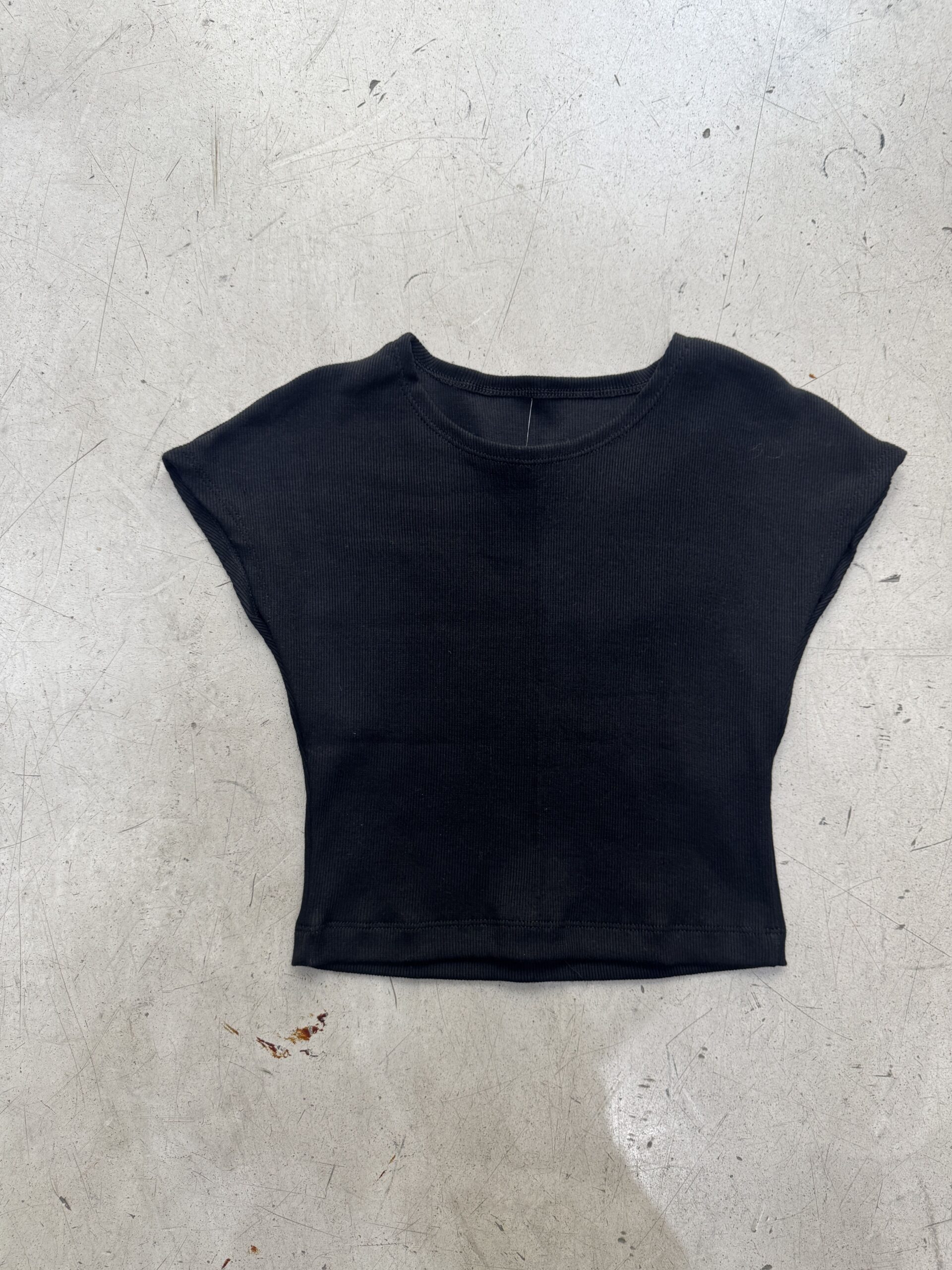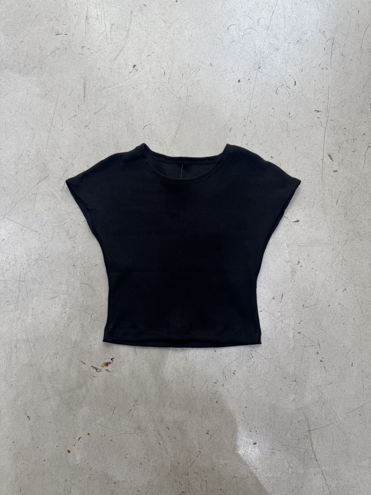 Remera hombro caído manga corta, sin costura de unión. De corte recto y al cuerpo con largo a la cintura.