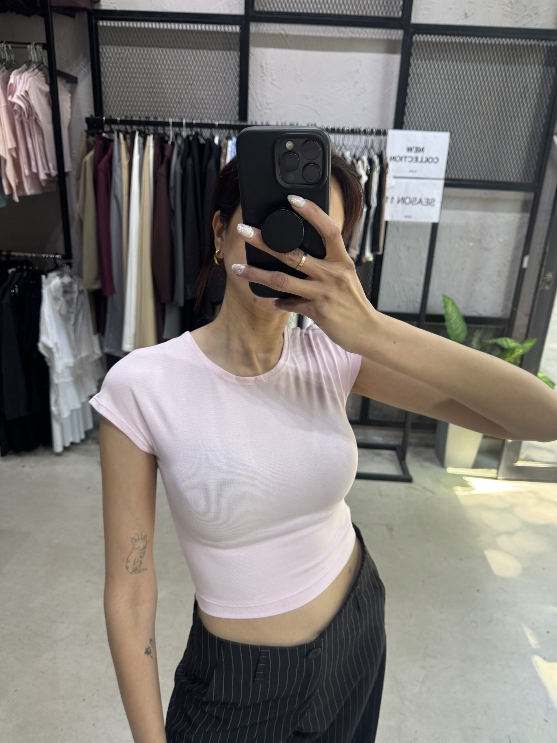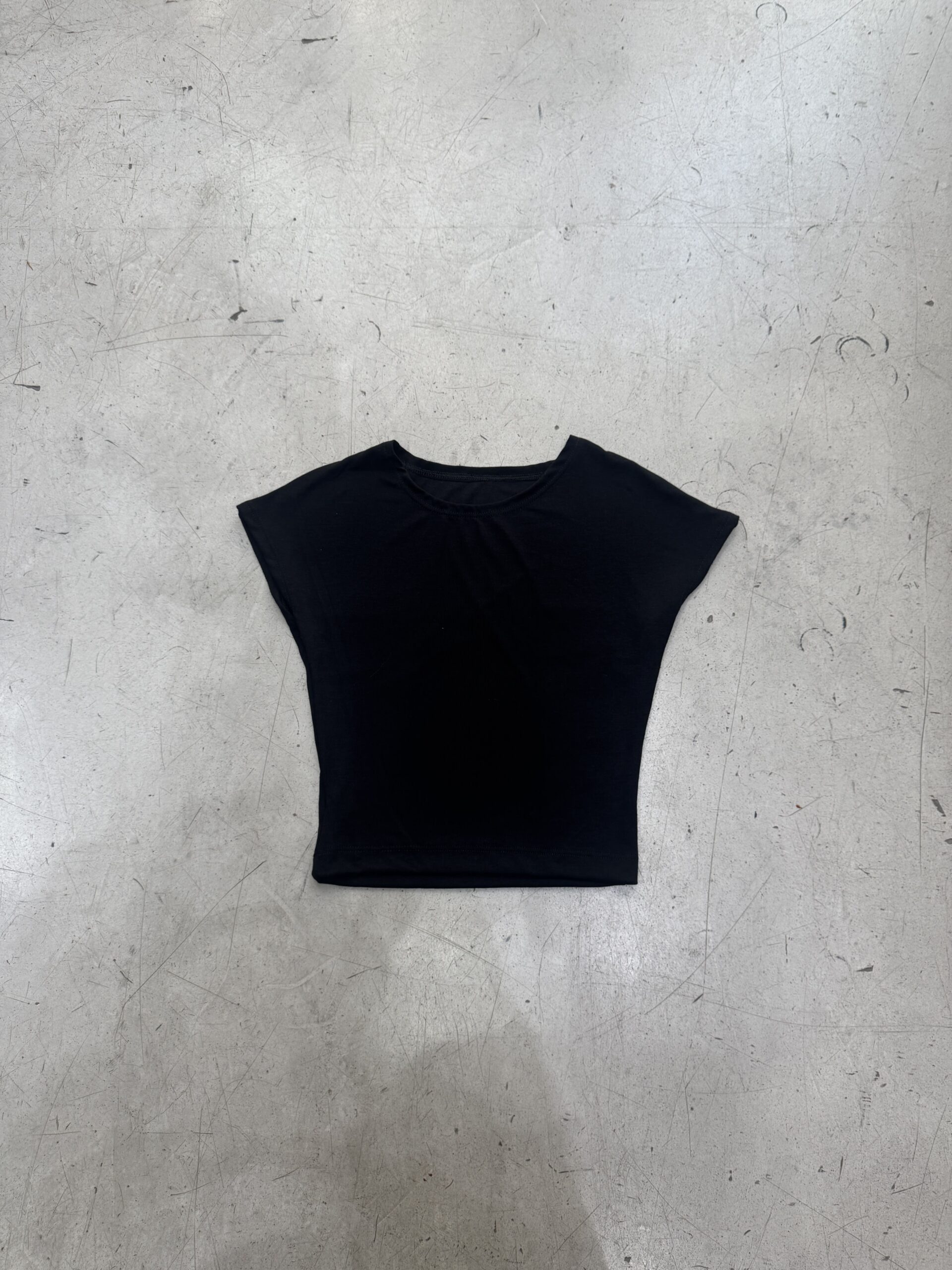 Remera manga corta detalle de hombro caído, escote redondo cerrado. Terminación ruedo recto con tapacostura. Largo del modelo a la cintura. Podés encontrarla del talle 1 al talle 3.